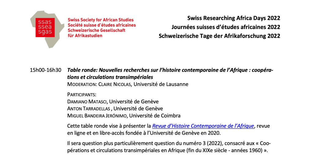 We will present this special issue at the 2022 Swiss Researching Africa Days, Bern, on Saturday 29 October 2023. Many thanks to Claire Nicolas for organizing this event!