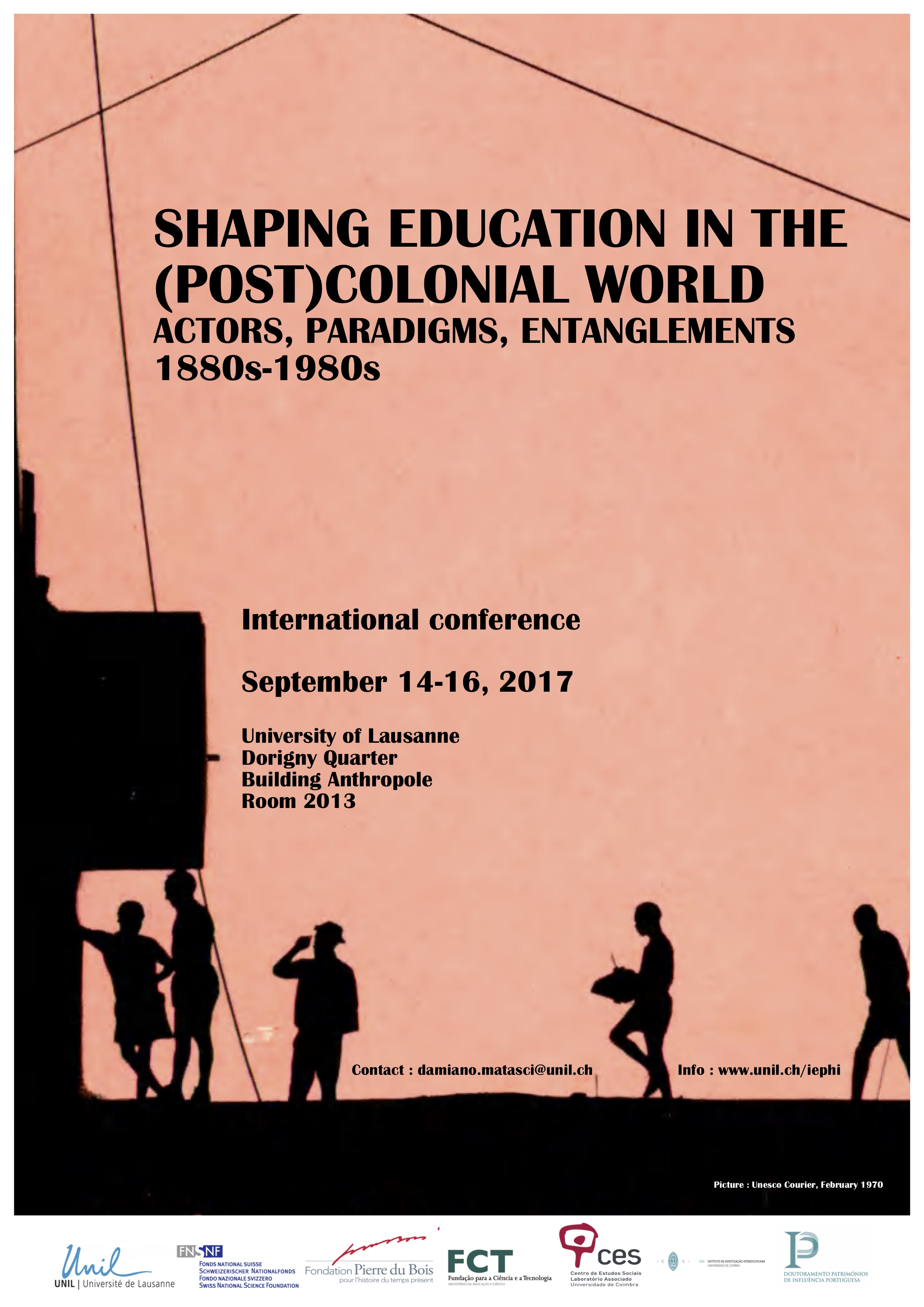 Shaping Education in the (Post)Colonial World. Actors, Paradigms, Entanglements. University of Lausanne, September 14-16, 2017. Co-organiser with Miguel Bandeira Jerónimo and Hugo Gonçalves Dores.
