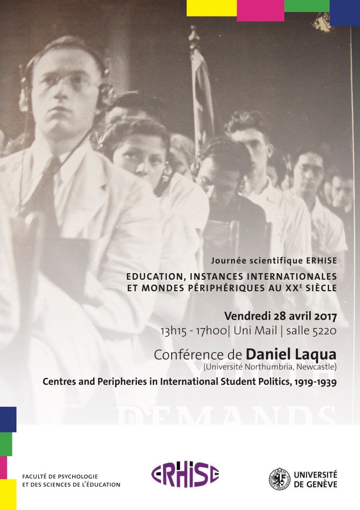 Workshop Éducation, instances internationales et mondes périphériques au XXe siècle, University of Geneva, April 28, 2017. Co-organiser with Rita Hofstetter and Joëlle Droux